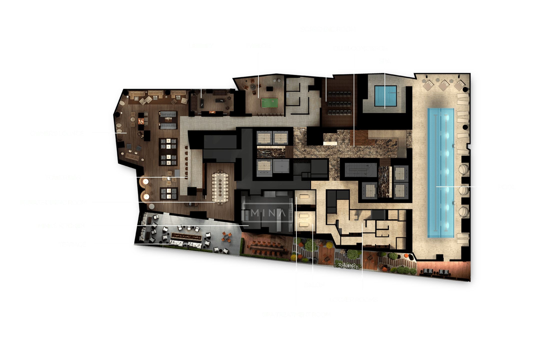 The Terrace will feature a fire pit, communal dining and intimate seating, spanning the entire length of the Tower’s south side. Accessible from The Owner’s Lounge, Private Dining Room and Pool, the terrace will be your private urban oasis in the heart of Boston.